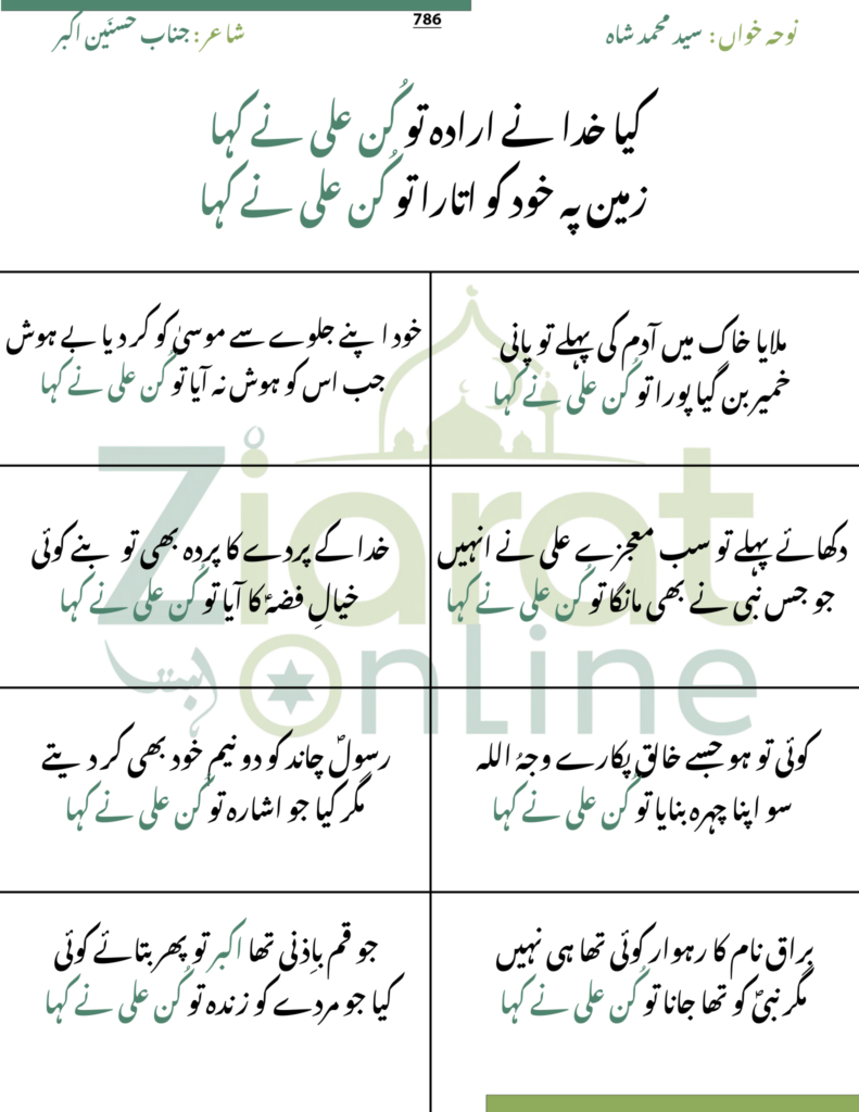 Zameen Pe Khud Ko Utara Tou Kun Ali Ne Kaha