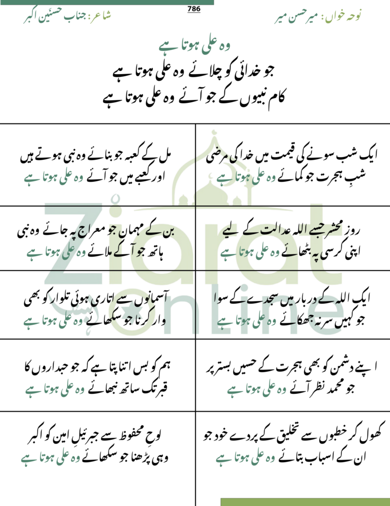 Wohi Parhna Jo Sikhaye Wo Ali Hota Hai